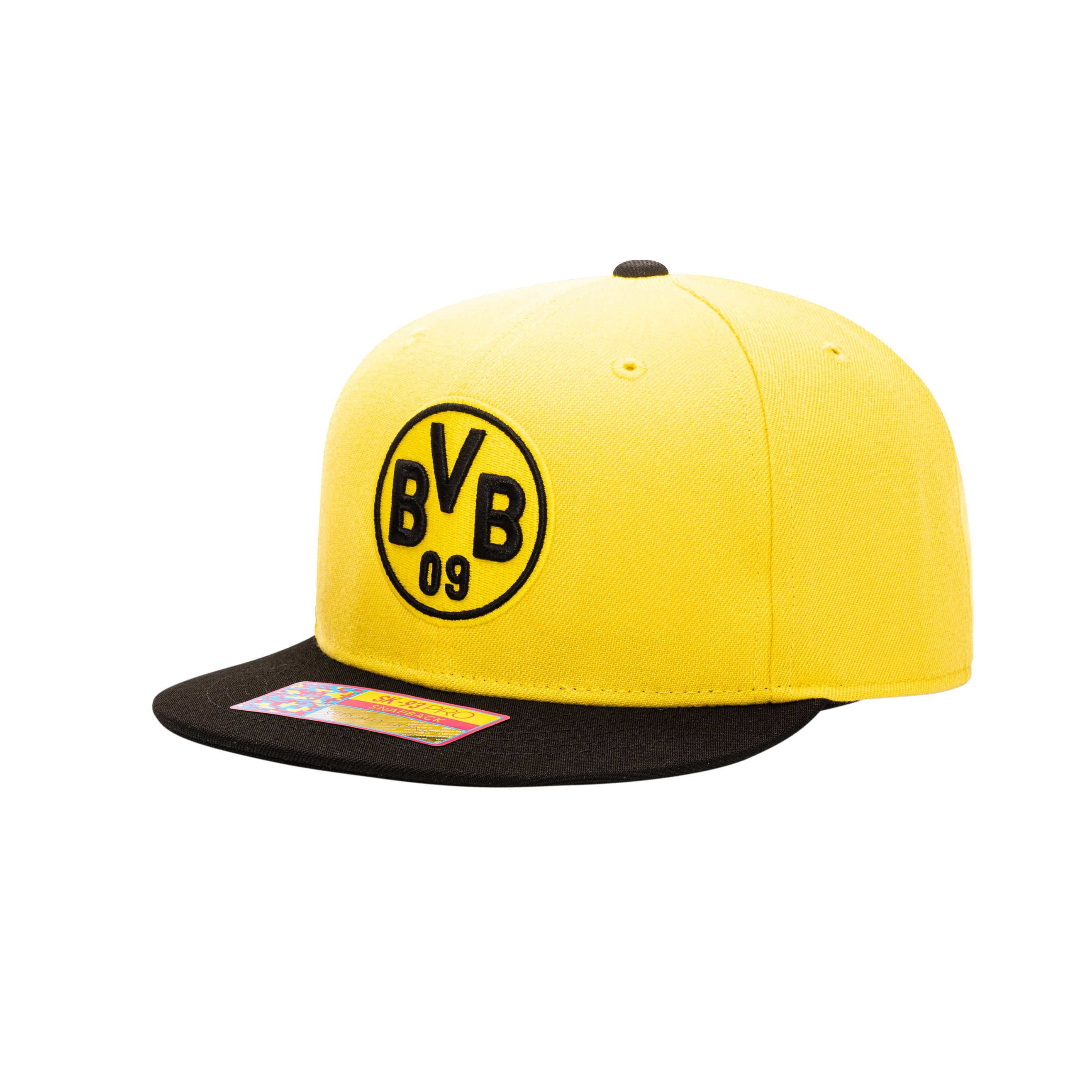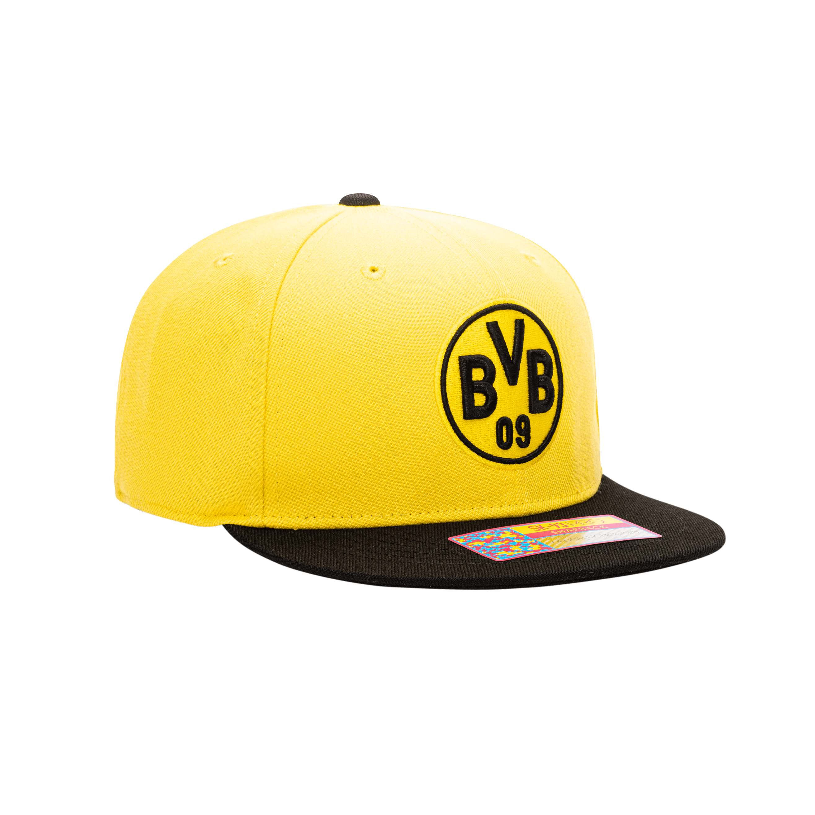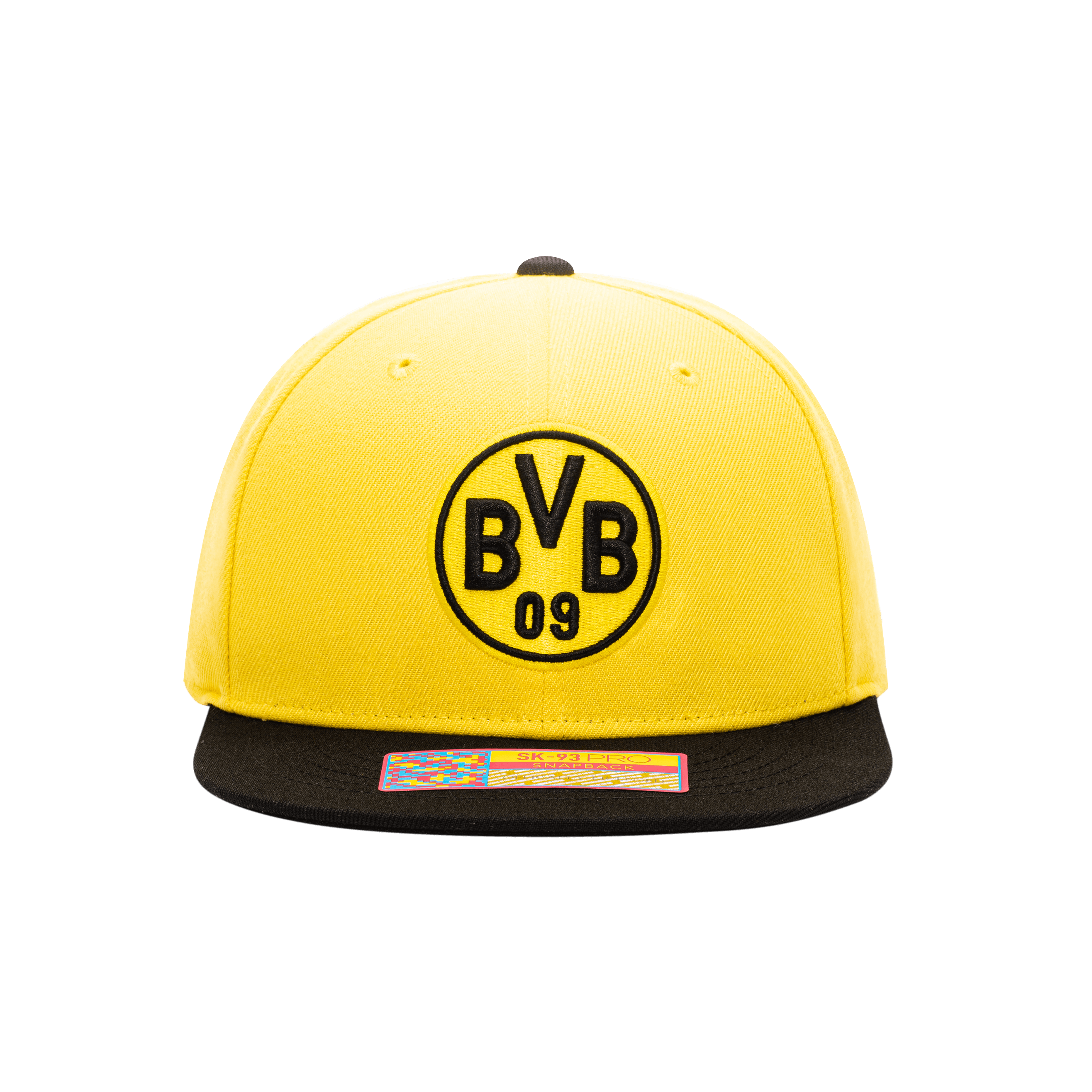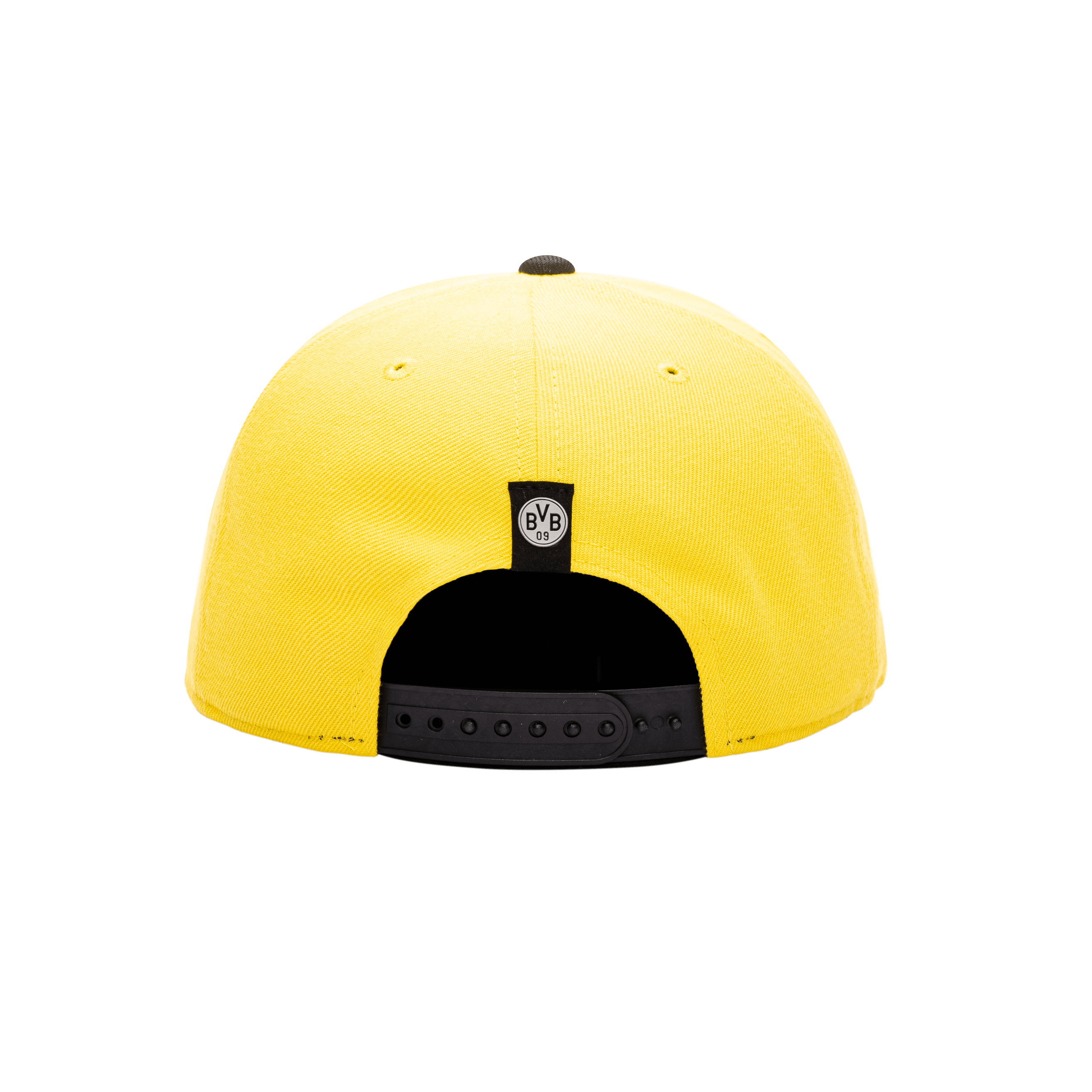 The Borussia Dortmund Team Snapback hat lets you show your support in style for "Die Schwarzgelben". The black and yellow without a doubt is synonymous to beautiful football which is why their die-hard fans never stop encouraging them during the 90 minutes of the match! This Team Hat features a front 3D embroidery of the team logo as well as a suede wrap label team logo on the back. It also allows you to make use of the team colours to show your support with fellow fans as the peak, backstrap and top button are in those colours. The hat has a high crown and a flat peak.