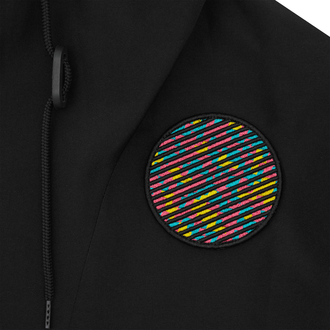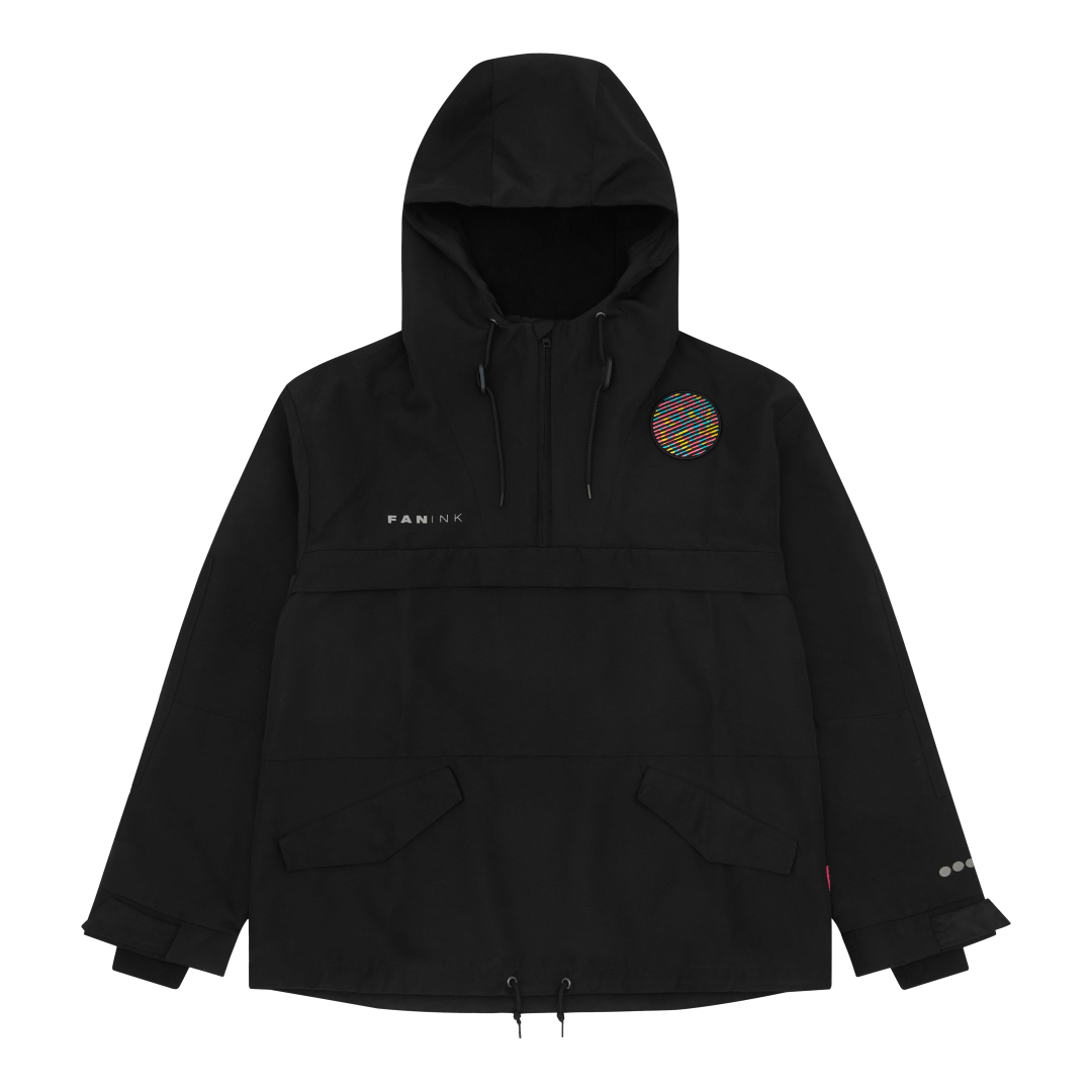 Adjustable drawstrings at hood and hem. Dual waist pockets. Ribbed cuffs. Mesh and polar fleece lining. Fan Ink 3M reflective print at right chest, left sleeve, and back hem. Fan Ink patches at left chest and back. Fan Ink woven label at side. Made in Portugal.