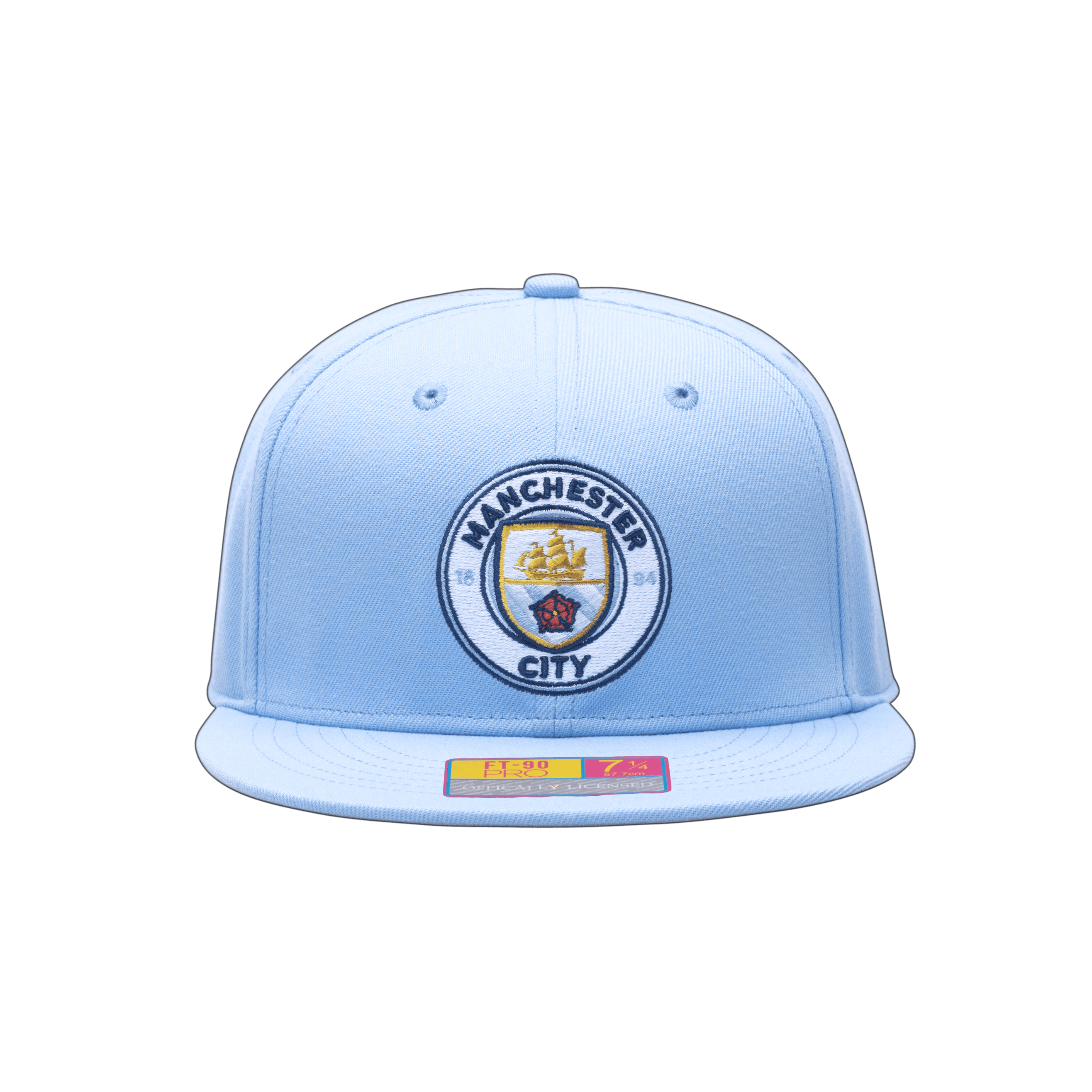 The Manchester City Dawn Fitted hat lets you show your support in style for this team! The Dawn hat features a front 3D embroidery of the team logo as well as a back embroidery of the year the team was founded. It makes use of team colors for the back embroidery of the year the team was founded to represent your true team spirit! The hat has a contrasting grey underpeak.